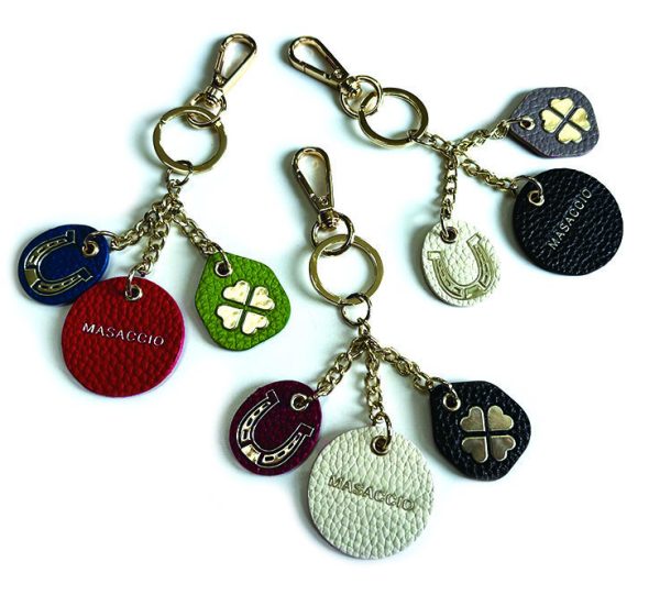クローバーと馬蹄のチャームを付けたキーチェーンです。
