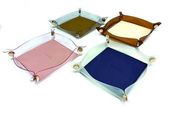 周囲の枠が透明で軽やかな、濡れても安心なPVC製ボタントレーです。